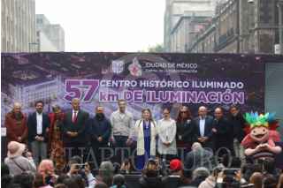 CIUDAD DE MÉXICO, 21ENERO2026.- Clara Brugada Molina, jefa de Gobierno de la Ciudad de México, durante su participación en la presentación de 57 kilómetros de Iluminación del Centro Histórico, la cual contará con un encendido de 15 edificios emblemáticos de la ciudad, así como 134 calles aledañas durante el siguiente periodo del año FOTO: GRACIELA LÓPEZ/CUARTOSCURO.COM
