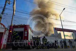 CIUDAD DE MÉXICO, 22ENERO2026.- Se registró un incendio en una supuesta fábrica de plásticos, ubicada sobre Avenida Guadalupe a la altura de la estación del Tren Ligero la Noria en la alcaldía Xochimilco. Al lugar arribaron equipos de emergencia capitalina para realizar labores de contención, controlar el incendio y posteriormente sofocarlo. FOTO: ROGELIO MORALES /CUARTOSCURO.COM
