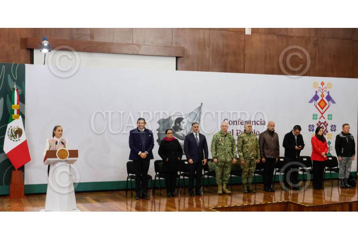 PUEBLA, PUEBLA, 22ENERO2026.- La Presidenta de la República, Claudia Sheinbaum, encabezó la Conferencia del Pueblo en la XXV Zona Militar en Puebla, acompañada del gobernador del estado, Alejandro Armenta. FOTO: MIREYA NOVO/ CUARTOSCURO.COM