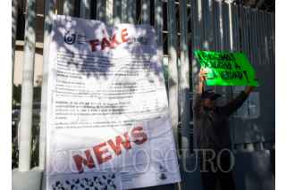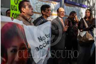CIUDAD DE MÉXICO, 27ENERO2026.- Los padres de Berenice Giles fotógrafa víctima mortal de accidente en el concierto de Axe Ceremonia se manifiestan en los juzgados civiles. Hace unos días la Fiscalía General de Justicia de la Ciudad de México (FGJCDMX) notificó que las empresas Operadora de Centros de Espectáculos, S.A. de C.V. (Ocesa) y Servicios de Protección Privada Lobo, S.A. de C.V., fueron imputadas por su presunta participación en el delito de homicidio. FOTO: ANDREA MURCIA /CUARTOSCURO.COM
