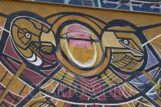CIUDAD DE MÉXICO, 28ENERO2026.- Concluyó la restauración de la obra "Nuevo símbolo universitario". Fue realizada por David Alfaro Siqueiros en 1953 y se encuentra en la fachada de la Rectoria de la Universidad Autónoma de México que da al oriente de Ciudad Universitaria. FOTO: ROGELIO MORALES /CUARTOSCURO.COM