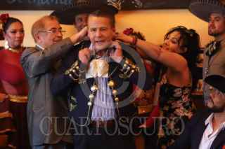 CIUDAD DE MÉXICO, 28ENERO2026.- El actor mexicano, Alfredo Adame, encabezó una conferencia de prensa para anunciar su nombramiento como el Rey de los Mariachis como parte de los festejos del Día del Mariachi el próximo 31 de enero. El actor recibió su característica indumentaria que utilizará el próximo sábado durante los festejos. FOTO: DANIEL AUGUSTO/ CUARTOSCURO.COM