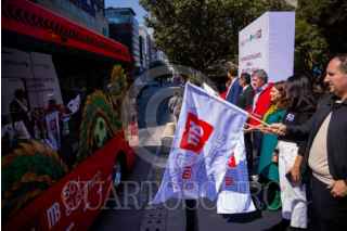 CIUDAD DE MÉXICO, 30ENERO2026.-Clara Brugada, jefa de Gobierno, encabezó la puesta en marcha de la nueva ruta Quetzalcóatl, del Metrobús Línea 4, que llegará de la Glorieta de Amajac (antes Glorieta de Colón) a las terminales 1 y 2 del Aeropuerto Internacional de la Ciudad de México (AICM). FOTO: GOBIERNO DE LA CIUDAD DE MÉXICO/CUARTOSCURO.COM