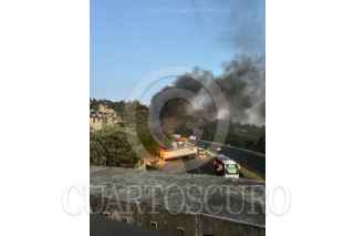 CIUDAD DE MÉXICO, 30ENERO2026.- Un trailer se incendió al chocar contra muro en el kilómetro 29 de la autopista México-Toluca alcaldía Cuajimalpa, FOTO: ROGELIO MORALES/CUARTOSCURO.COM