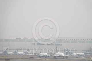 CIUDAD DE MÉXICO, 01FEBRERO2026.- Una desna capa de neblina cubrió la pista de aterrizaje y despegues del Aeropuerto Internacional de la Ciudad de México.Esto se debe a la estrada del Frente Frio número 32, el cual a causado vientos helados y una baja significativa en la temperatura. FOTO: ROGELIO MORALES /CUARTOSCURO.COM