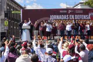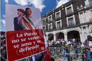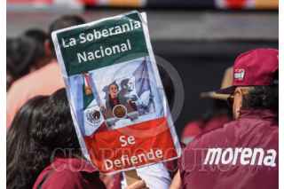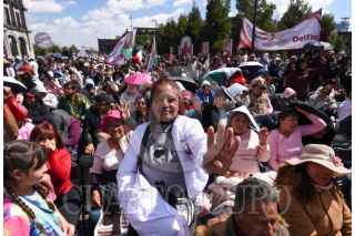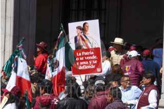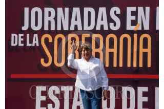 TOLUCA, ESTADO DE MÉXICO, 01FEBRERO2026. Delfina Gómez Álvarez, gobernadora del Estado de México durante las Jornadas en Defensa de la Soberanía Nacional frente a Palacio de Gobierno en la ciudad de Toluca. Reafirmaron su apoyo a la presidenta Claudia Sheinbaum en la defensa de la soberanía nacional. FOTO: CRISANTA ESPINOSA AGUILAR/CUARTOSCURO.COM