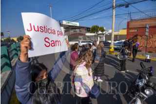TOLUCA, ESTADO DE MÉXICO, 05FEBRERO2026.- Una colectiva feminista bloqueó Paseo Tollocan a la altura de la vialidad Cristóbal Colón en la ciudad de Toluca, exigiendo justicia para Samantha, quien fue víctima de violencia doméstica por parte de su ex pareja, denuncian que su proceso judicial ha sufrido retrasos y ha pasado cuatro años y aún no tiene resolución, exigen a las autoridades dejen de postergar la llegada de la justicia. FOTO: CRISANTA ESPINOSA AGUILAR/CUARTOSCURO.COM