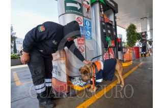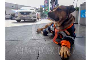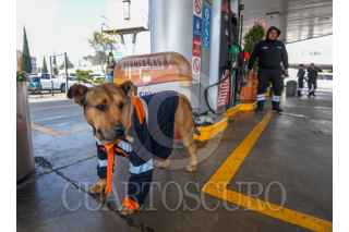 TOLUCA, ESTADO DE MÉXICO, 05FEBRERO2026.- Solovino es un perrito que encontró una familia y hogar en la gasolinera conocida como La Jet ubicada en Paseo Tollocan en su cruce con la vialidad Pino Suárez, convirtiéndose en un colaborador mas de este lugar. Por las noches usa pijamada y en el día su camisola como sus compañeros despachadores, él revisa las bombas y los vehículos durante el día, recibiendo varias caricias de clientes y despachadores. Llego aproximadamente hace un mes al lugar y desde entonces se ha robado el corazón de todos, los trabajadores han cooperado para su veterinario, croquetas, medicamentos, una casita, y al aparecer en redes sociales algunos clientes también le han llevado regalos. FOTO: CRISANTA ESPINOSA AGUILAR/CUARTOSCURO.COM