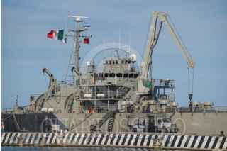 VERACRUZ, VERACRUZ, 06FEBRERO2026.- La embarcación Isla Holbox BAL-02 perteneciente a la Secretaría de Marina (SEMAR) realiza labores de carga en el puerto de Veracruz para el envío de ayuda humanitaria destinada a Cuba, acción anunciada previamente por la presidenta Claudia Sheinbaum, Los insumos se encuentran empaquetados en cajas debidamente embaladas, las cuales son trasladadas mediante vehículos de carga y equipo especializado maniobrado por elementos de La Marina. FOTO: VICTORIA RAZO/CUARTOSCURO.COM