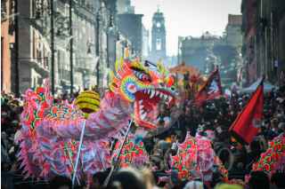 CIUDAD DE MÉXICO, 07FEBRERO2026.- Decenas de familias disfrutaron del tradicional desfile de dragones y leones para recibir el año nuevo chino 2026 (Año del Caballo), evento organizado por el Museo Nacional de las Culturas del Mundo que recorrió la calle de Moneda en el Centro Histórico. FOTO: MARIO JASSO/CUARTOSCURO.COM