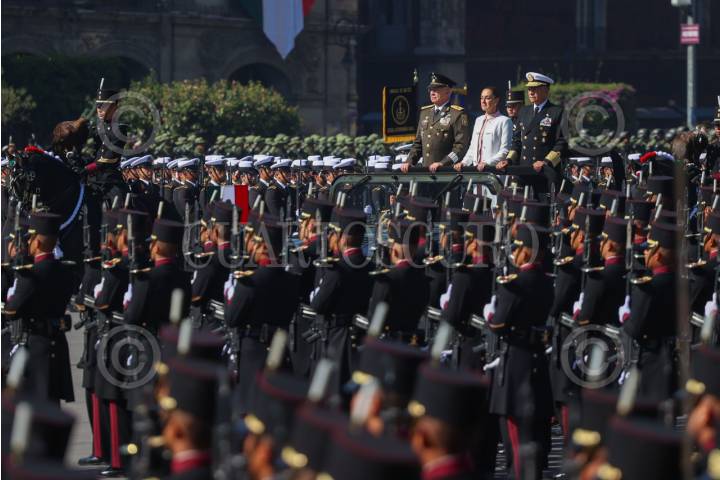 CIUDAD DE MÉXICO, 09FEBRERO2026.- Claudia Sheinbaum Pardo, Presidenta de México, encabezó el 113 Aniversario de la Marcha de la Lealtad, en el Zócalo. La acompañaron en el desfile Ricardo Trevilla Trejo, secretario de la Defensa, y Raymundo Pedro Morales Ángeles, secretario de la Marina. FOTO: MOISÉS PABLO/CUARTOSCURO.COM