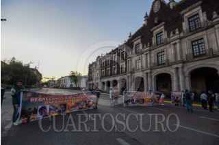 TOLUCA, ESTADO DE MÉXICO, 09FEBRERO2026.- Familiares de Óscar, Gregorio, Omar y Javier, originarios de Ixtlahuaca y desaparecidos en Mazatlán, marcharon al Palacio de Gobierno exigiendo a las autoridades que redoblen sus esfuerzos en la búsqueda para darles con su paradero cuanto antes. Con lonas que muestran las fotografías de los jóvenes y la leyenda "Mazatlán regrésanos a nuestros hijos, Somos del Estado de México” piden sus familiares regresen con vida a sus hogares. FOTO: CRISANTA ESPINOSA AGUILAR/CUARTOSCURO.COM
