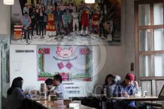 CIUDAD DE MÉXICO, 11FEBRERO2026.- El Museo del Pulque y las Pulquerías celebra su séptimo aniversario. Personas asisten para tomar pulque y recorrer las diversas salas con las que cuenta el museo, donde se exhiben exposiciones de fotografía e ilustración, un ajolotario y una zona dedicada a artículos para la elaboración del pulque, así como su historia a través del tiempo, mitos y dichos. FOTO: CAMILA AYALA BENABIB / CUARTOSCURO.COM