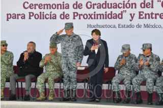 HUEHUETOCA, ESTADO DE MÉXICO, 12FEBRERO2026.- Personal recién graduado de la Secretaría de Seguridad del Estado de México en el “Curso de formación inicial para policías de proximidad” impartida por Guardia Nacional y la Secretaría de la Defensa Nacional en el Centro de Adiestramiento Especializado de Policía Militar. A su vez el gobierno del Estado de México, realizó la entrega de vehículos a la policía municipal de Texcoco y Zacualpan. FOTO: MARIO JASSO/CUARTOSCURO.COM