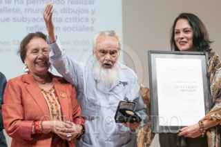 CIUDAD DE MÉXICO, 12FEBRERO2026.-El muralista mexicano Guillermo Monroy falleció a los 102 años, dejando un legado artístico profundamente vinculado a la tradición pictórica. Discípulo de Frida Kahlo, Monroy formó parte de una generación marcada por el nacionalismo cultural y la búsqueda de identidad a través del arte. En la imagen de archivo, Guillermo Monroy recibiendo la Medalla Bellas Artes en la categoría de Artes Visuales. La ceremonia fue encabezada por Lucina Jiménez, directora del INBAL. FOTO: MOISÉS PABLO/CUARTOSCURO.COM