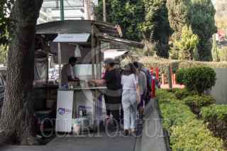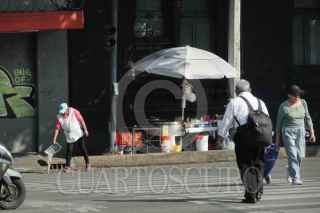 CIUDAD DE MÉXICO, 12FEBRERO2026.- Puestos callejeros se instalan sobre avenida Revolución, a la altura de la calle Rubens, en la alcaldía Benito Juárez, dejando poco espacio para el tránsito peatonal y se ha reportado que cuando los puestos son concurridos, las personas que consumen se colocan alrededor de estos sobre la avenida, lo que representa un riesgo para su seguridad. FOTO: CAMILA AYALA BENABIB / CUARTOSCURO.COM