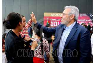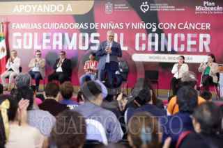 MORELIA, MICHOACÁN, 14FEBRERO2026.- Alfredo Ramírez Bedolla, gobernador de Michoacán, durante evento indicó que a través del programa Familias Cuidadoras de Niñas y Niños con Cáncer, 780 personas cuidadoras han recibido apoyos directos de 4 mil pesos mensuales. El mandatario señaló que en septiembre del año pasado se invirtieron 165 millones de pesos de recursos estatales en la adquisición de un acelerador lineal y un PET Scan, para brindar tratamientos especializados a los pacientes oncológicos. FOTO: GOBIERNO DE MICHOACÁN/CUARTOSCURO.COM