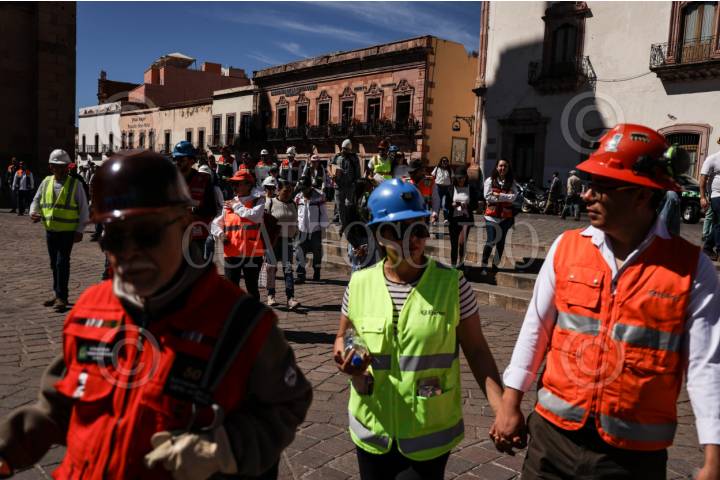 ZACATECAS, ZACATECAS, 14FEBRERO2026.- Mineros y mineras marcharon por las principales calles del centro histórico, acompañando a familiares y amigos de Ignacio Salazar Flores Jose Ángel Hernandez Vélez, mineros desaparecidos y después localizados sin vida en una fosa clandestina en la comunidad de El Verde, municipio de Concordia, Sinaloa; los trabajadores demandaron justicia y protección para su trabajo, como parte la convocatoria a nivel nacional “Los mineros estamos de luto”. FOTO: ADOLFO VLADIMIR /CUARTOSCURO.COM