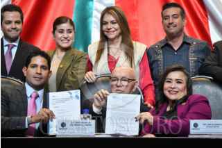 CIUDAD DE MÉXICO, 17FEBRERO2026.- Ricardo Madrid Pérez, diputado del PVEM, y David Rogelio Colmenares, Auditor Superior de la Federación, durante la tercera entrega del informe del resultado de la fiscalización superior de la cuenta pública 2024, realizada en el salón Legisladores de la República en la Cámara de Diputados. FOTO: MARIO JASSO/CUARTOSCURO.COM