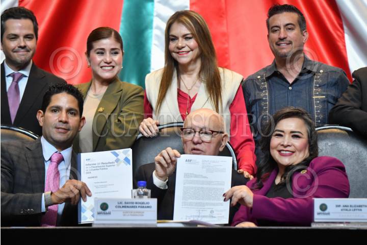 CIUDAD DE MÉXICO, 17FEBRERO2026.- David Rogelio Colmenares, Auditor Superior de la Federación, durante la tercera entrega del informe del resultado de la fiscalización superior de la cuenta pública 2024, realizada en el salón Legisladores de la República en la Cámara de Diputados. Lo acompañan los integrantes de dicha comisión: Javier Herrera Borunda, y Ana Elizabeth Ayala. FOTO: MARIO JASSO/CUARTOSCURO.COM