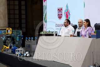 CIUDAD DE MÉXICO, 17FEBRERO2026.- José Mario Esparza, secretario de Gestión Integral del Agua (SEGIAGUA), y Clara Brugada Molina, jefa de gobierno de la Ciudad de México, encabezaron la conferencia de prensa en la que se anunció la inversión, mantenimiento y estrategias en el sistema de aguas de la capital para está próxima temporada de lluvias. FOTO: GALO CAÑAS/CUARTOSCURO.COM