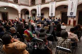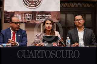 ZACATECAS, ZACATECAS,18FEBRERO2026.- Nadya Rasheed, embajadora de Palestina en México, durante un encuentro con universitarios en el edificio de Rectoría de la Universidad Autónoma de Zacatecas. Fue acompañada por Ángel Román, rector de la máxima casa de estudios. FOTO: ADOLFO VLADIMIR /CUARTOSCURO.COM