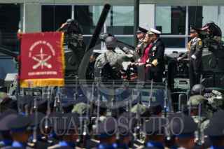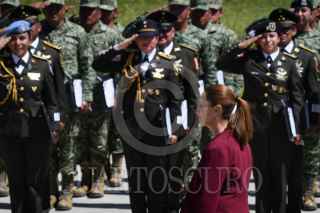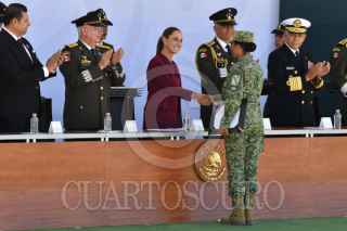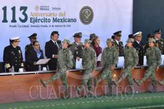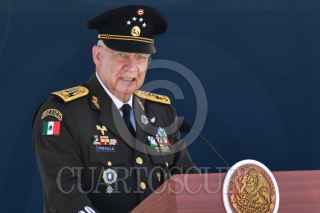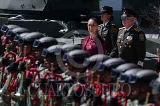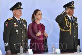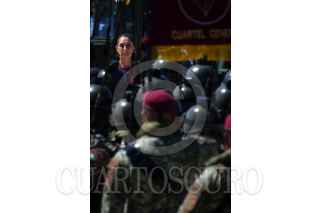 ORIENTAL, PUEBLA, 19FEBRERO2026.- Claudia Sheinbaum, presidenta de México, durante su intervención en la ceremonia del 113 aniversario del Día del Ejército Mexicano llevada a cabo en las instalaciones de la Dirección General de Industria Militar "La Célula". FOTO: MARIO JASSO/CUARTOSCURO.COM