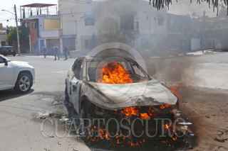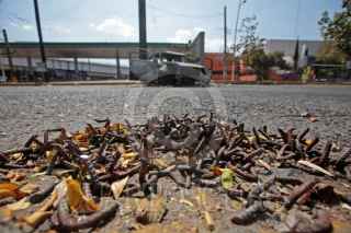 GUADALAJARA, JALISCO, 22FEBRERO2026.- Quema de vehículos y camiones del transporte público fueron perpetrados por hombres armados en varios puntos de Guadalajara, se presume que fue una reacción por parte de integrantes del Cartel Jalisco Nueva Generación (CJNG) tras la noticia de que su líder Nemesio Oseguera "El Mecho", fuera abatido en un operativo del Ejército Mexicano ena comunidad de Tapalpa, Jalisco. FOTO: FERNANDO CARRANZA/CUARTOSCURO.COM