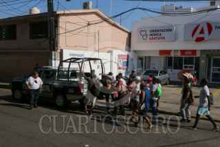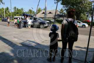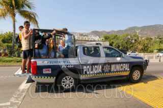 ACAPULCO, GUERRERO, 22 DE FEBRERO DE 2026.- Tras los ataques armados al transporte público registrados después de la muerte del líder del Cártel Jalisco Nueva Generación, Nemesio Oseguera, “El Mencho”, concesionarios decidieron parar el servicio, por lo que patrullas de la Policía Estatal intentaron apoyar a la población en sus traslados. La muerte del narcotraficante ocurrió en un operativo encabezado por las Fuerzas Armadas en el poblado de Tapalpa, Jalisco. FOTO: CARLOS ALBERTO CARBAJAL / CUARTOSCURO.COM