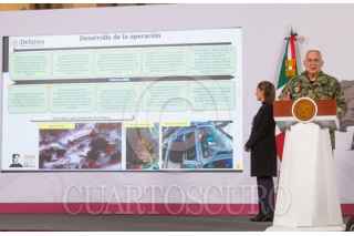 CIUDAD DE MÉXICO, 23FEBRERO2026.- Claudia Sheinbaum Pardo, Presidenta de México, ofreció un informe de la detención y muerte de Nemesio Rubén Oseguera "El Mencho", líder del Cartel Jalisco Nueva Generación (CJNG), señalo que el criminal fue localizado en un rancho de la localidad de Tapalpa, Jalisco, gracias al seguimiento a una de sus parejas sentimentales. Fue acompañada de Ricardo Trevilla Trejo, titular de la Defensa; Omar García Harfuch, titular de la SSy PC, y Raymundo Pedro Morales Ángeles, titular de la Marina. El secretario general reconoció a los soldados caídos durante el operativo. FOTO: MOISÉS PABLO/CUARTOSCURO.COM