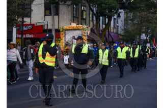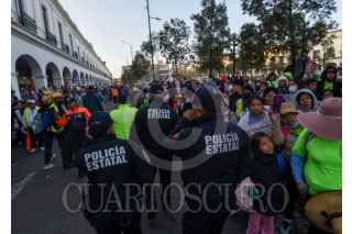 TOLUCA, ESTADO DE MÉXICO, 24FEBRERO2026.- Elementos de la Policía Estatal y municipales de Toluca resguardan peregrinos en su camino como parte de la 88 Peregrinación de la Arquidiócesis de Toluca al Tepeyac, que partieron esta mañana de la capital mexiquense en donde pernoctaron. FOTO: CRISANTA ESPINOSA AGUILAR/CUARTOSCURO.COM