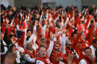 CIUDAD DE MÉXICO,24FEBRERO2026.- Trabajadores de la Confederación de Trabajadores de México (CTM) durante el XVII Congreso Nacional Ordinario de la realizado en el Centro Banamex. FOTO: GRACIELA LÓPEZ/CUARTOSCURO.COM
