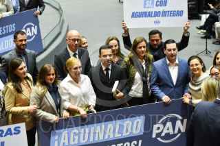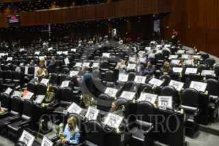 CIUDAD DE MÉXICO, 24FEBRERO2026.- Diputados del grupo parlamentario de Morena muestran cartulinas en apoyo del dictamen en lo materia de reducción de la jornada laboral a 40 horas que se encuentra en discusión en lo general y particular en la sesión ordinaria de la Cámara de Diputados. FOTO: MARIO JASSO/CUARTOSCURO.COM