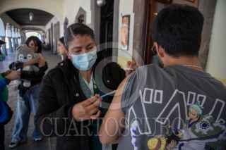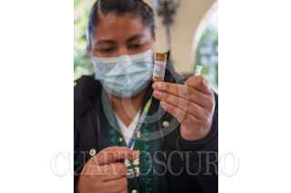 TLAXCALA, TLAXCALA, 24FEBRERO2026.- Personal del sistema IMSS-Bienestar, se observa durante la aplicación de dosis de vacuna contra el Sarampión. De acuerdo con información del Sector Salud, en el estado se han registrado la muerte de un menor, un total de 95 casos que están en análisis, 28 casos confirmados, mientras que tres permanecen como sospechosos y se confirma que el área con mayor incidencia de casos es el municipio de San Pablo del Monte, municipio ubicado al sur del estado, colindante con Puebla. FOTO: J. GUADALUPE PÉREZ/CUARTOSCURO.COM