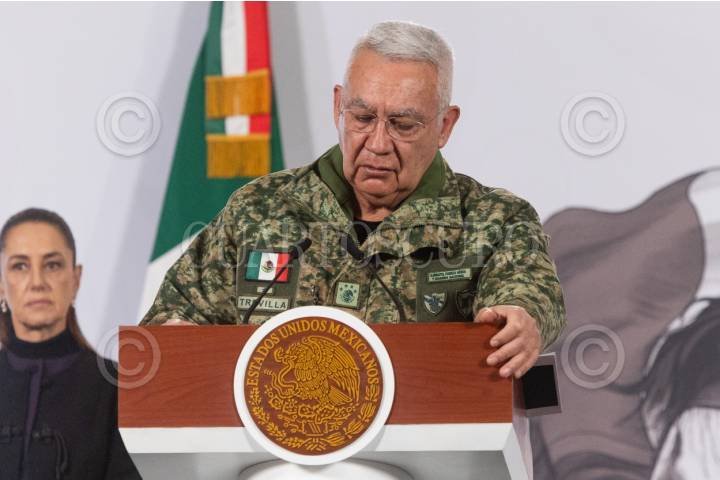 CIUDAD DE MÉXICO, 23FEBRERO2026.- Ricardo Trevilla Trejo, secretario de la Defensa Nacional, ofreció un informe sobre el operativo donde se detuvo al líder del Cártel Jalisco Nueva Generación (CJN), Nemesio Rubén Oseguera “El Mencho”, durante un operativo en Tapalpa, Jalisco. Durante el informe cuando detallo las bajas de los soldados caídos durante estas acciones se le quebró la voz y resaltó que se hizo valer la fuerza del Estado Mexicano. FOTO: MOISÉS PABLO/CUARTOSCURO.COM