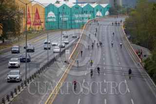 MONTERREY, NUEVO LEÓN, 01MARZO2026.- Ciclistas participantes de la carrera Iron Man avanzan por Avenida Constitución FOTO: GABRIELA PÉREZ MONTIEL / CUARTOSCURO.COM