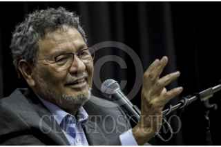 GUANAJUATO, GUANAJUATO, 04MARZO2026.- Élmer Mendoza, escritor mexicano, fue galardonado con el IX Premio Jorge Ibargüengoitia de Literatura, otorgado por la Universidad de Guanajuato (UG) en la categoría de novela negra. En la imagen, Élmer Mendoza, durante la presentación de su libro "Asesinato en el parque Sinaloa" en la XXXVI Feria del Libro de Tijuana en 2018. FOTO: ARCHIVO/OMAR MARTÍNEZ/CUARTOSCURO.COM