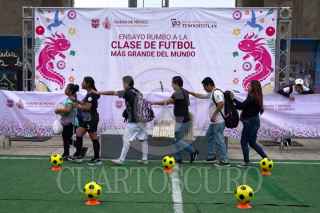 IUDAD DE MÉXICO, 04MARZO2026.- Tomados hombro a hombro con bastón y hasta bolsas con alegrías y palanquetas que venden para sustento, un grupo de personas invidentes se retiran luego de ser invitados al evento de Mujeres Libres en el Fútbol organizado por el gobierno. FOTO: ROGELIO MORALES /CUARTOSCURO.COM