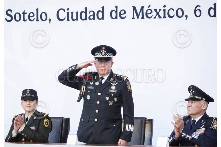 CIUDAD DE MÉXICO, 06MARZO2026.- Hernán Cortés Hernández, oficial mayor de la Secretaría de la Defensa Nacional, realizando un saludo militar durante la ceremonia del “50 aniversario de la creación de la Escuela Militar de Odontología. FOTO: CAMILA AYALA BENABIB / CUARTOSCURO.COM