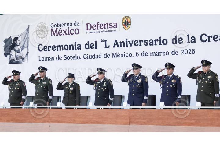 CIUDAD DE MÉXICO, 06MARZO2026.- Ceremonia del “50 aniversario de la creación de la Escuela Militar de Odontología”, realizada en las instalaciones del Centro Militar de Ciencias de la Salud. La ceremonia fue encabezada por Patricia Verónica del Castillo López, directora de la Escuela Militar de Odontología, acompañada por Hernán Cortés Hernández, oficial mayor de la Secretaría de la Defensa Nacional, Miguel Eduardo Hernández Velázquez, inspector y contralor general del Ejército, Fuerza Aérea y Guardia Nacional, entre otros mandos militares. FOTO: CAMILA AYALA BENABIB / CUARTOSCURO.COM