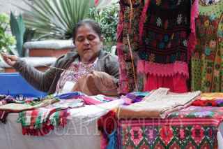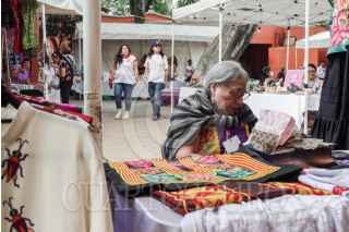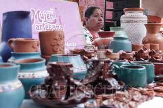 CIUDAD DE MÉXICO, 06MARZO2026.- Artesana de Michoacán que ofrece piezas de barro de Patamban durante la Feria artesanal “Mujer artesana, herencia y continuidad de una tradición”, realizada en el Museo Nacional de Culturas Populares. FOTO: CAMILA AYALA BENABIB / CUARTOSCURO.COM