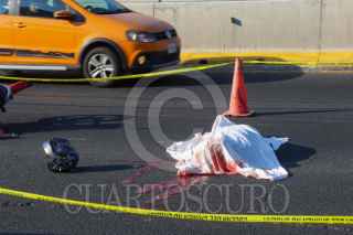 VALLE DE CHALCO, ESTADO DE MÉXICO, 07MARZO2026.- Una pareja que viajaba en su motocicleta derrapó, en la autopista México-Puebla, kilómetro 26 en la colonia Avandaro, en el Municipio de Valle de Chalco. El hombre murió en el lugar, y su acompañante fue traslada mal herida a un hospital. FOTO: ROGELIO MORALES/CUARTOSCURO.COM