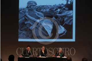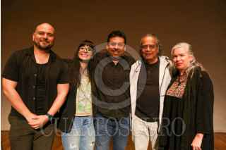 CIUDAD JUÁREZ, CHIHUAHUA, 07MARZO2026.- Pedro Valtierra, director de la Agencia y Revista Cuartoscuro, presentó su libro "Sin miedo a la luz", en el Teatro Experimental Octavio Trías. Lo acompañaron Itzel Aguilera y Gabriel Cardona. FOTO: MANUEL SÁNCHEZ/CUARTOSCURO.COM