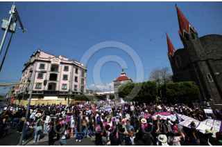 CUERNAVACA, MORELOS, 08MARZO2026.- Miles de mujeres acompañadas de sus familiares, estudiantes de la Universidad Autónoma del Estado de Morelos y colectivos de búsqueda de desaparecidos marcharon para conmemorar el Día Internacional de la Mujer. Un grupo de mujeres realizo pintas en edificios públicos. FOTO: MARGARITO PÉREZ RETANA/CUARTOSCURO.COM