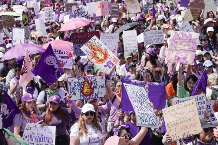 CIUDAD DE MÉXICO, 08MARZO2026.- Cientos de mujeres marcharon en el marco del Día Internacional de la Mujer (8M). Contingentes que partieron desde distintos puntos de la ciudad avanzaron sobre Paseo de la Reforma hacia el Zócalo capitalino con pancartas y consignas para exigir justicia por las mujeres asesinadas o desaparecidas, así como para denunciar la violencia y las injusticias en contra de las mujeres. FOTO: CAMILA AYALA BENABIB / CUARTOSCURO.COM