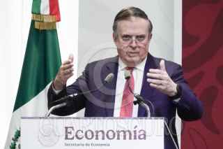 CIUDAD DE MÉXICO, 09MARZO2026.- El secretario de Economía, Marcelo Ebrard, ofreció un mensaje sobre los resultados de la consulta pública del T-MEC durante una conferencia realizada en la Secretaría de Economía. FOTO: CAMILA AYALA BENABIB / CUARTOSCURO.COM