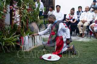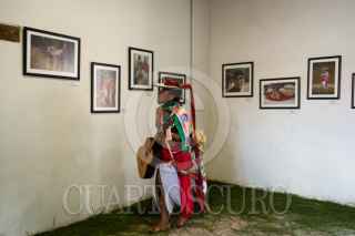 HUIXTAN, CHIAPAS, 09MARZO2026.- En el marco del último día del carnaval tsotsil de Huixtán, los fotógrafos Sasak Nichim Martínez y Abraham Gómez realizaron una donación de obra fotográfica a la Casa de Cultura de la cabecera municipal. Las piezas documentan el seguimiento de un grupo de Tanchak, personajes fundamentales de esta celebración. Este acto, realizado entre ceremonias tradicionales y discursos de las autoridades locales, rinde homenaje a quienes resguardan las tradiciones. Al mismo tiempo, Sasak Nichim establece un precedente histórico para las futuras generaciones de mujeres tsotsiles en las artes, reivindicando el trabajo comunitario a través de la fotografía. FOTO: ISABEL MATEOS HINOJOSA/CUARTOSCURO.COM