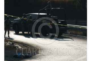 XOCHITEPEC, MORELOS, 10MARZO2026.- Policías de la Secretaria de Seguridad Pública de Morelos, resguardan una escena de crimen en el retorno de la Autopista del Sol ubicado en el kilometro 110, a la altura de este municipio. Al amanecer automovilistas que transitaban por el lugar tuvieron a la vista el cuerpo sin vida de un joven que tenia la cabeza cubierta con una bolsa de basura, maniatado y con señales de violencia extrema; la victima vestía pantalón de mezclilla azul y playera del mismo color, cinturón negro y no tenia calzado. El sitio fue resguardado hasta la llegada de peritos e investigadores de la Fiscalía de Justicia quienes iniciaran la averiguación del caso. FOTO: MARGARITO PÉREZ RETANA/CUARTOSCURO.COM