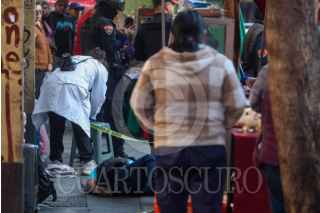 CIUDAD DE MÉXICO, 11MARZO2026.- Un hombre murió de un supuesto infarto, en la calle de Bolívar y avenida Izazaga, vecinos señalaron que la víctima se desempeñaba ayudando a los comerciantes a poner sus puestos en la vía pública. FOTO: ROGELIO MORALES/CUARTOSCURO.COM