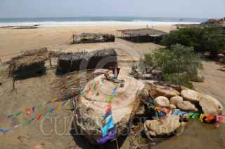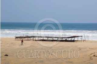 PLAYA AZUL, GUERRERO, 12MARZO2026.- La comunidad de Playa Azul en el municipio de Copala de la región de Costa Chica de Guerrero, fue arrasada por el oleaje que provocó el fenómeno de mar de fondo, alrededor de 18 en enramadas que funcionaban como restaurantes que atendían a turismo que llega a esa playa quedaron destruidas y prácticamente desaparecieron de la playa. Este pequeño pueblo turístico se fundó hace alrededor de cinco años cuando se construyó un puente por donde empezaron a circular automovilistas que pasaron a frecuentar el lugar y poco a poco ha ido creciendo. FOTO: CARLOS ALBERTO CARBAJAL/CUARTOSCURO.COM